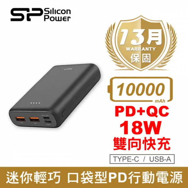 【Silicon Power 廣穎】C10QC(支援PD QC快充) 雙向快充 口袋型PD行動電源 10000mAh(黑)