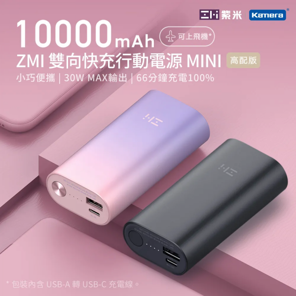 ZMI 紫米 PD QC USB-C 雙向快充 Mini 行動電源 10000mAh 30W QB818
